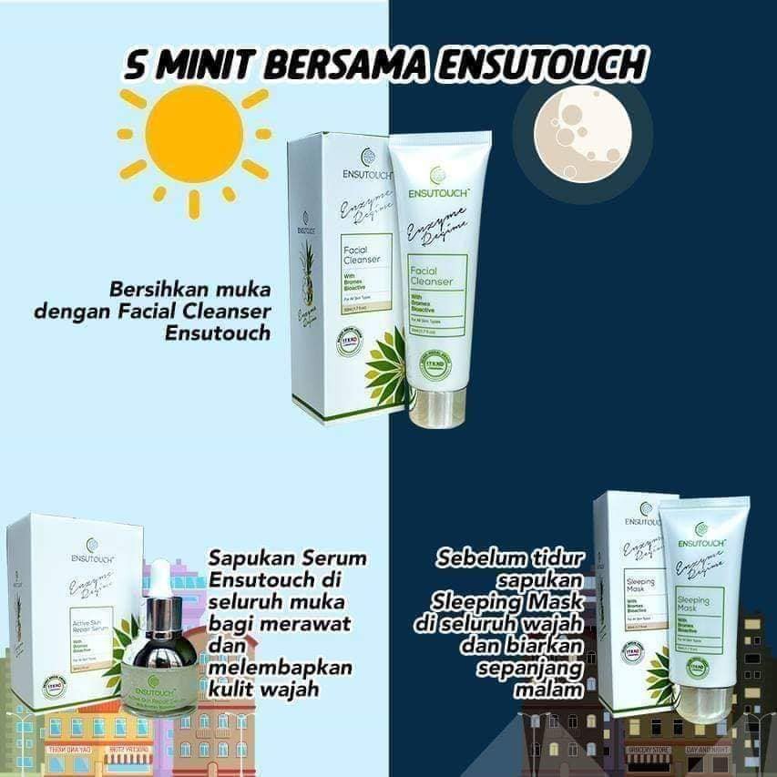 64 likes 1 talking about this. Apa Kata Pengguna Ensutouch - Skincare Kajian Sirim Berhad Ensutouch merupakan kosmeseutikal pertama di malaysia yang mengunakan enzim bromelin berasaskan nenas yang dapat membantu menyelesaikan masalah jeragat kulit kusam dan jerawat melalui kaedah rejuvinasi sel kulit tanpa mengunakan bahan kimia terlarang.